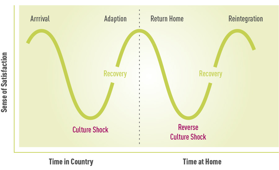 不过这还不是适应的结束。有学者发现,当旅居异文化的人好不容易适应了新文化后,再回到自己原来的文化时,又出问题了。他们会发现自己又不能适应原来的文化了。