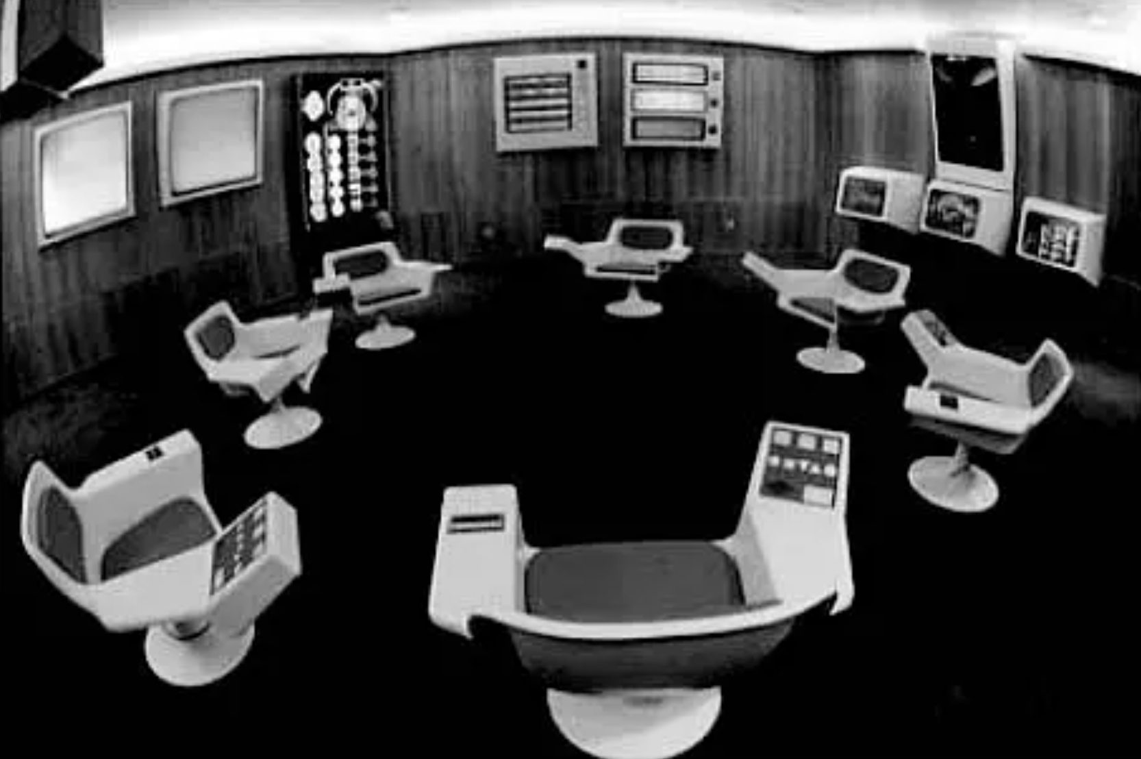 从现有的照片上看,他们的中央控制室还带有当时好莱坞科幻片宇宙飞船风格。管理者只要通过这里的键盘操作,就可以实时看到国有企业的各项信息,并且进行任务的下达。这套系统当时还在处理智利卡车工人大罢工中发挥的重要作用。