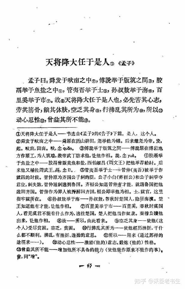 是关于他在背古文的时候,在《孟子·告子下》中的大家很熟悉的一段话“故天将降大人于是人也,必先苦其心志,劳其筋骨,饿其体肤,空乏其身,行拂乱其所为,所以动心忍性,增益其所不能。”