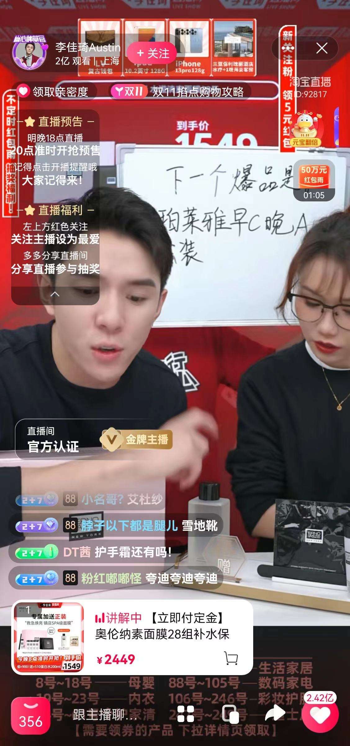 2亿网友观看李佳琦直播(图片来自网友截图)