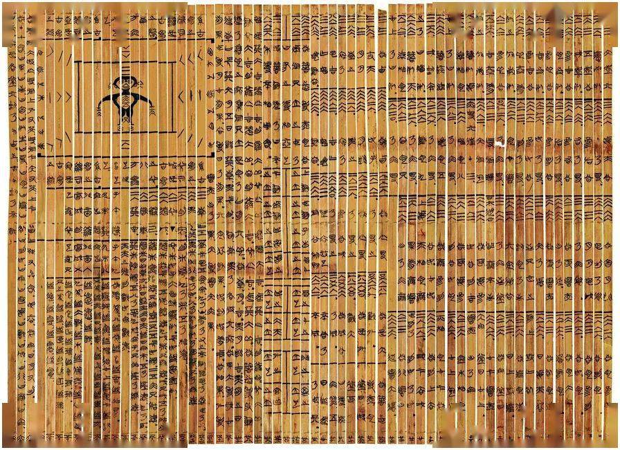 竹简就是将一片一片经过脱水处理的长条状的竹片用绳子依次绑在一起。大家只要想一想“册”字,就明白竹简是如何串在一起,这个字就来自于竹简的造型。每条竹简上只能竖着写一行字。