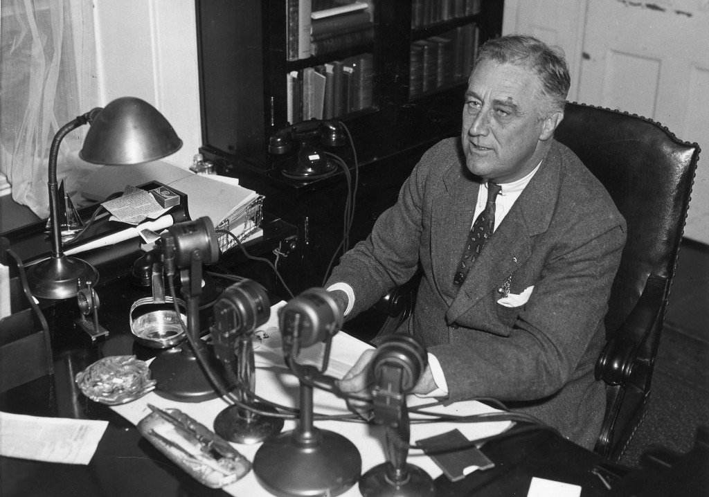 1930年代美国经济大萧条期间,美国总统富兰克林·罗斯福利用广播进行“炉边谈话”